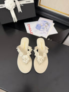 CC 25 Flower Thong Slippers White Cowhide 233415