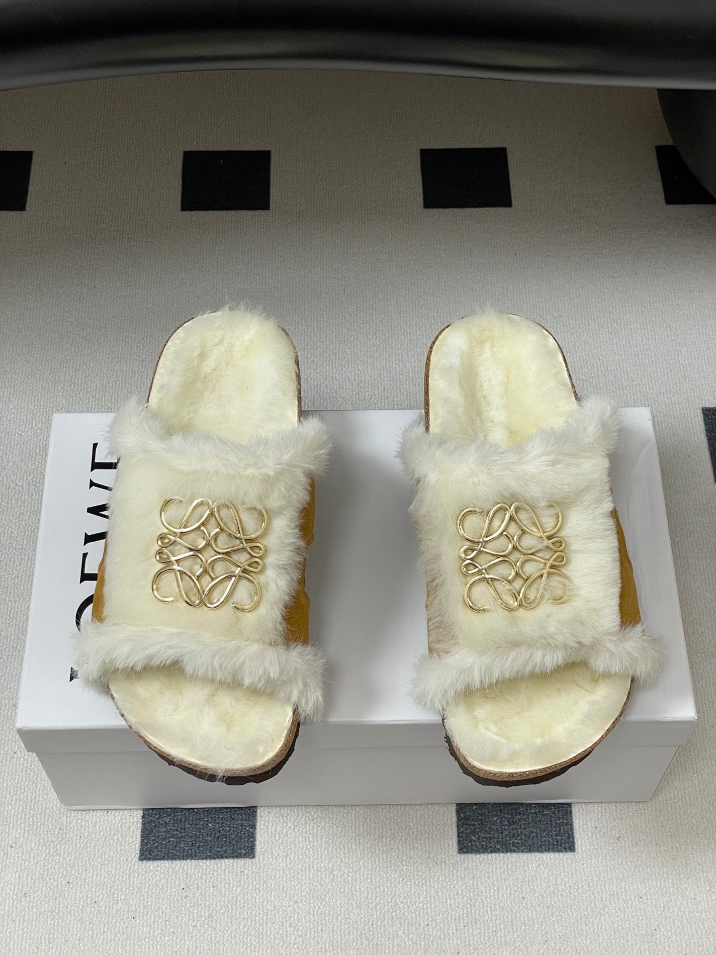 Loewe x Birkenstock slippers white tan further