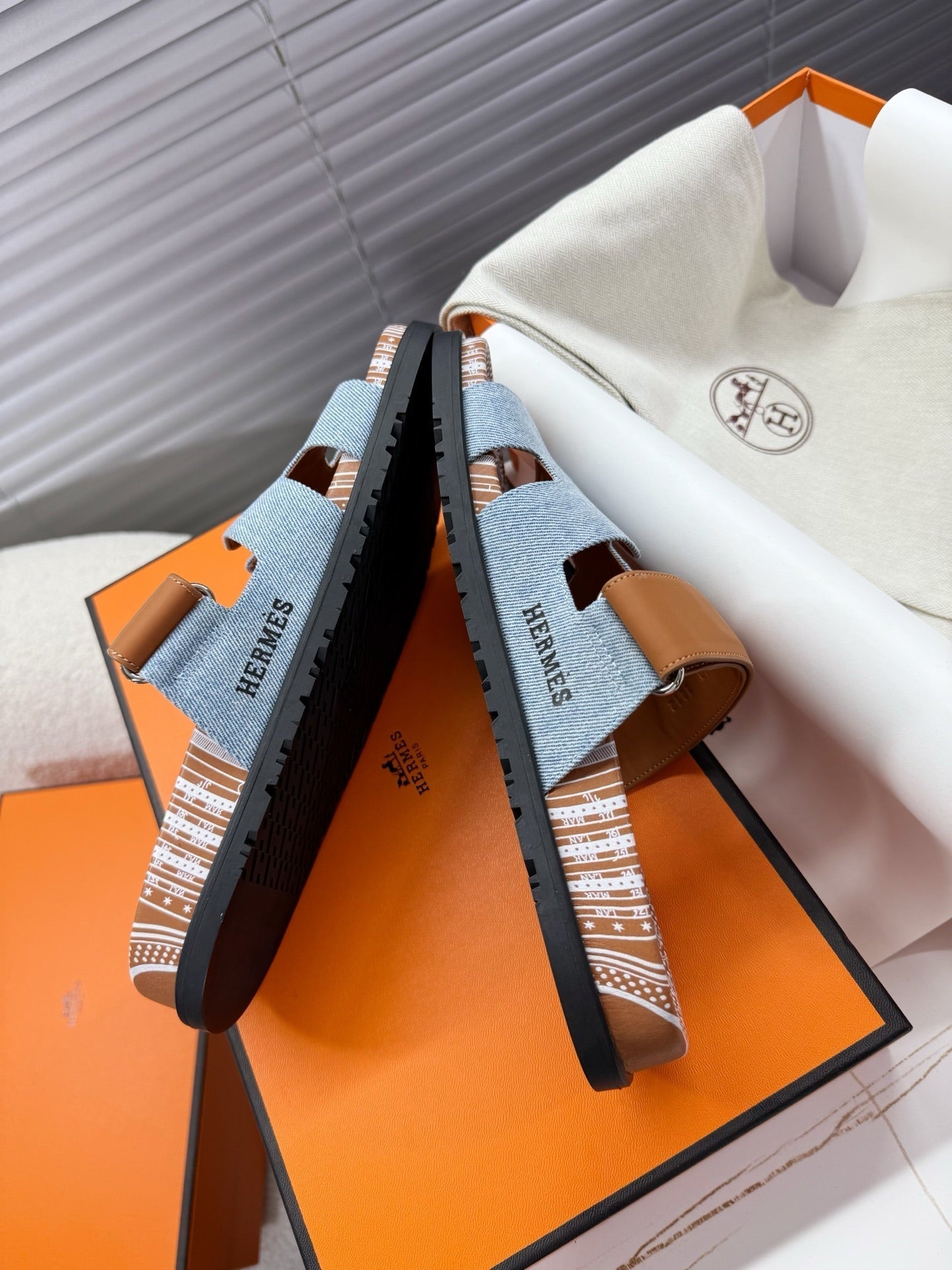 HM Chypre Sandal Demin Blue mix Caramel Brown Demin with Cowhide 205490