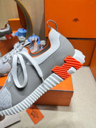 HM Depart slip-on Sneaker White mix gray Knitted fabric and Calfskin 206323
