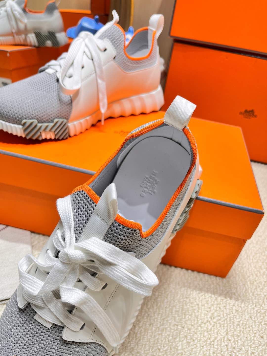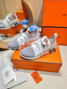 HM Depart slip-on Sneaker White mix Grey Knitted fabric and Calfskin 206334