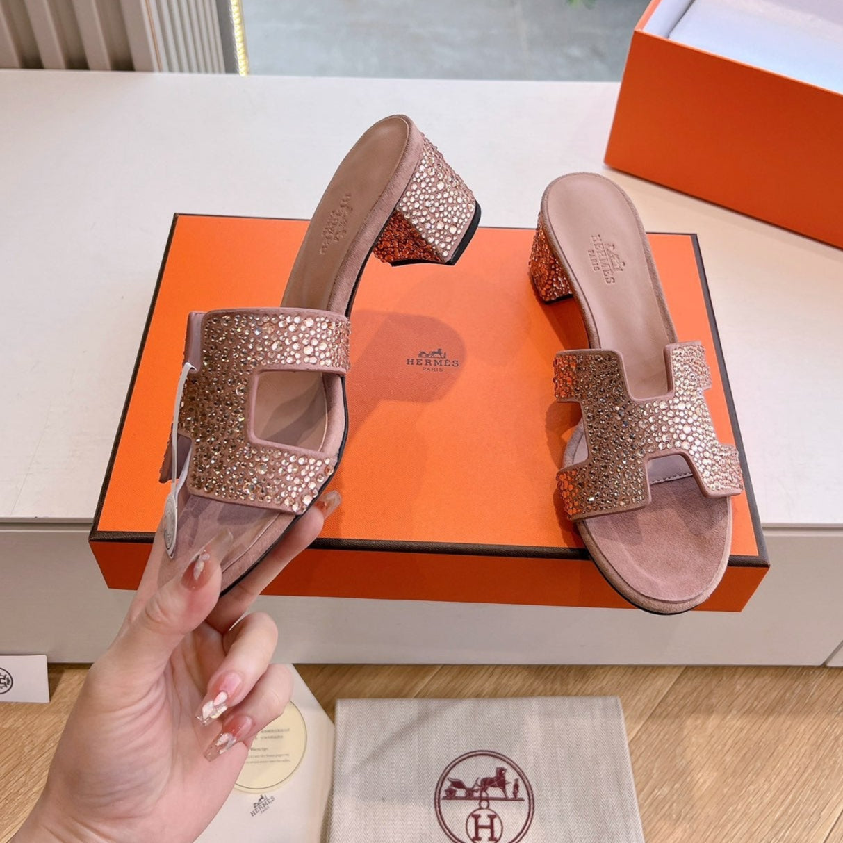 HM 25C Oran Sandal Salom Leather With Rhinestone 202831