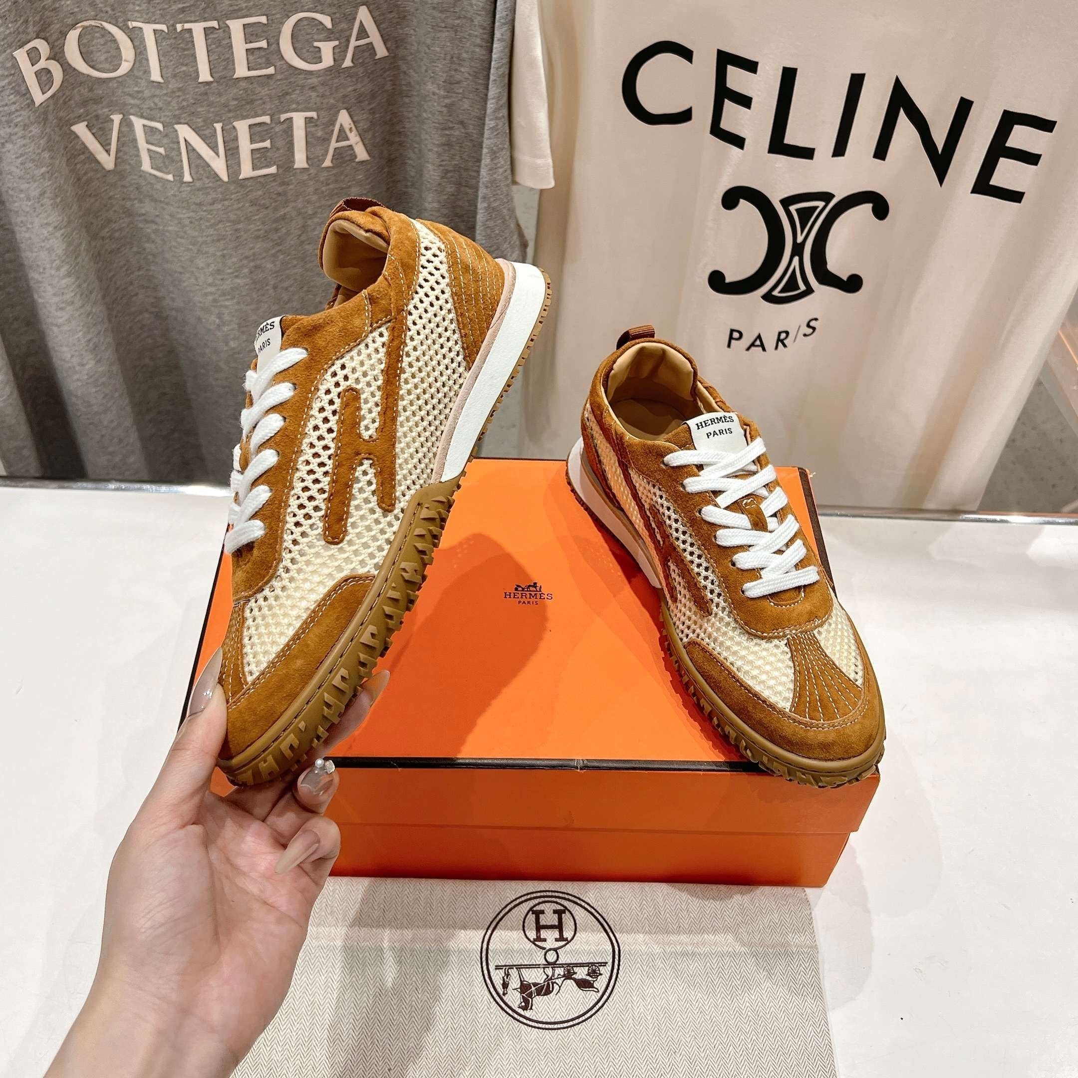 HM 25C Kiga sneaker Tortilla Brown Crochet knit with Calfskin 208294