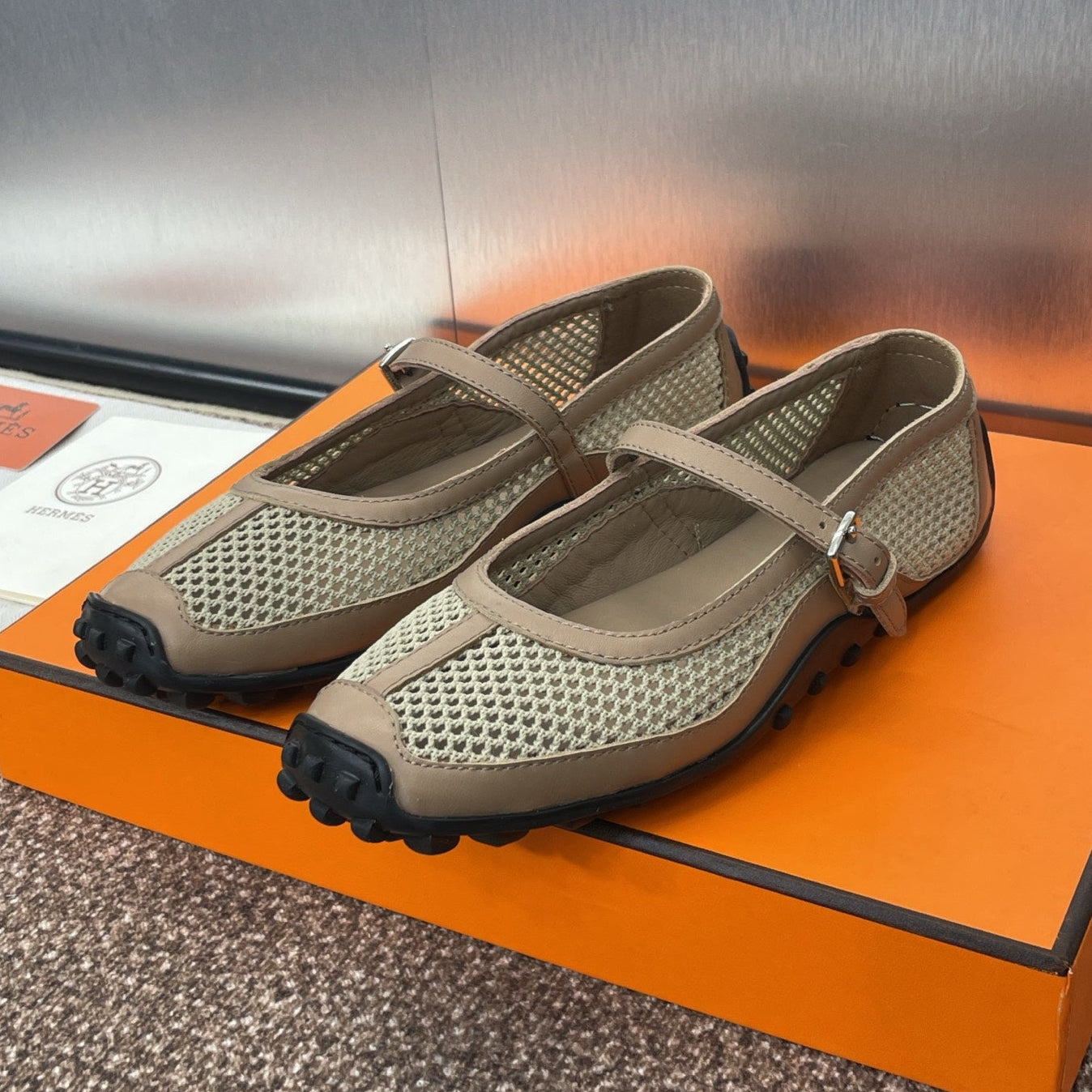 HM 25C Kelly Ballet Flat Gris Clair Calfskin 208267