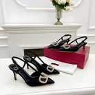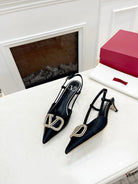 Valentino 25 White Vlogo Signature Slingback Pumps Black Silk 239504