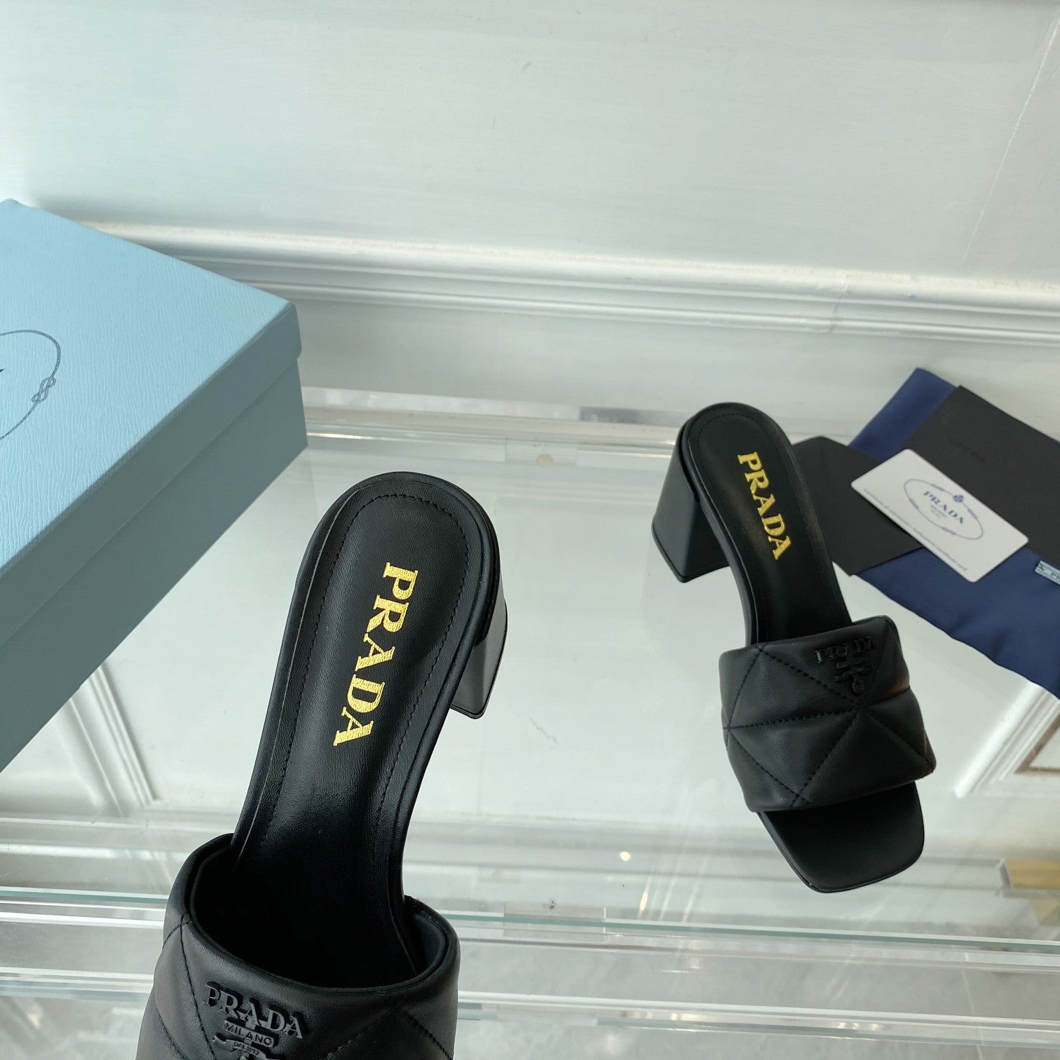 PRA QUILTED HIGH HEELS SANDALS 65 BLACK LAMBSKIN