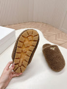 MULES ATTACHED TRIANGLE LOGO IN WOOD BROWN SHEARLING