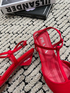 PRA SATIN SLINGBACK PUMPS CRIMSON