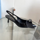 PRA SLINGBACK PUMPS GLOSSY BLACK ATTACHED BOW LAMBSKIN
