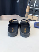 PRA STRAP SLIDES SANDALS GLOSSY BLACK CALFSKIN