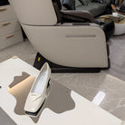 TRIANGLE LOGO PUMPS IN WHITE GLOSSY CALFSKIN