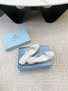 TRIANGLE LOGO SLINGBACK PUMPS WITH BOW IN WHITE CALFSKIN