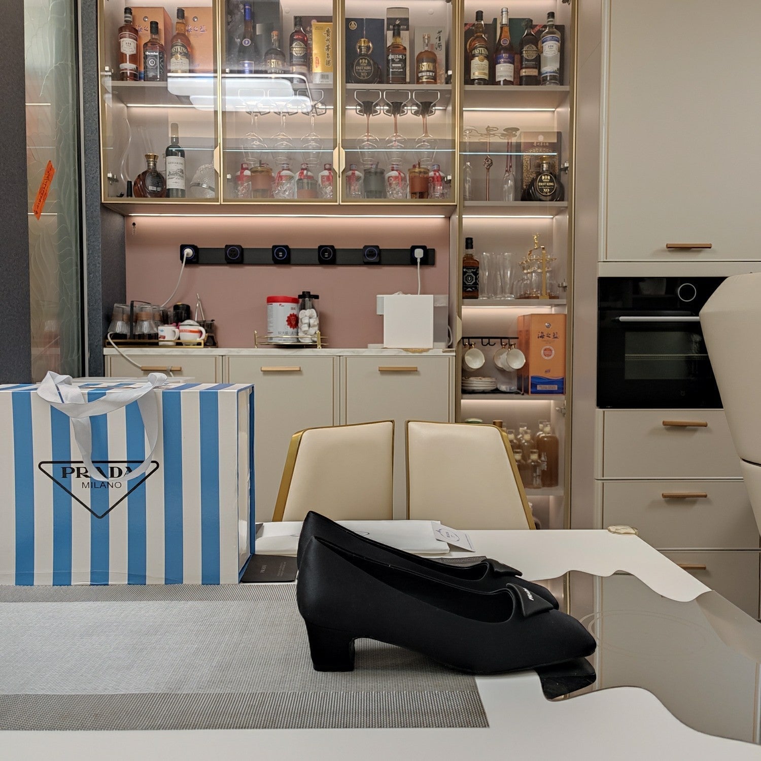 CUT-OUT PUMPS WITH BEAD BUCKLE IN BABY PINK SATIN