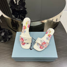 PRA PRINTED SLIDES SLIPPERS WHITE SATIN