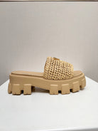 PRA THICK-SOLED CROCHET SANDALS BEIGE WOVEN FABRIC