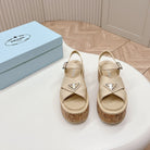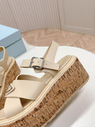 PRA WEDGE PLATFORM SANDALS BEIGE CALFSKIN