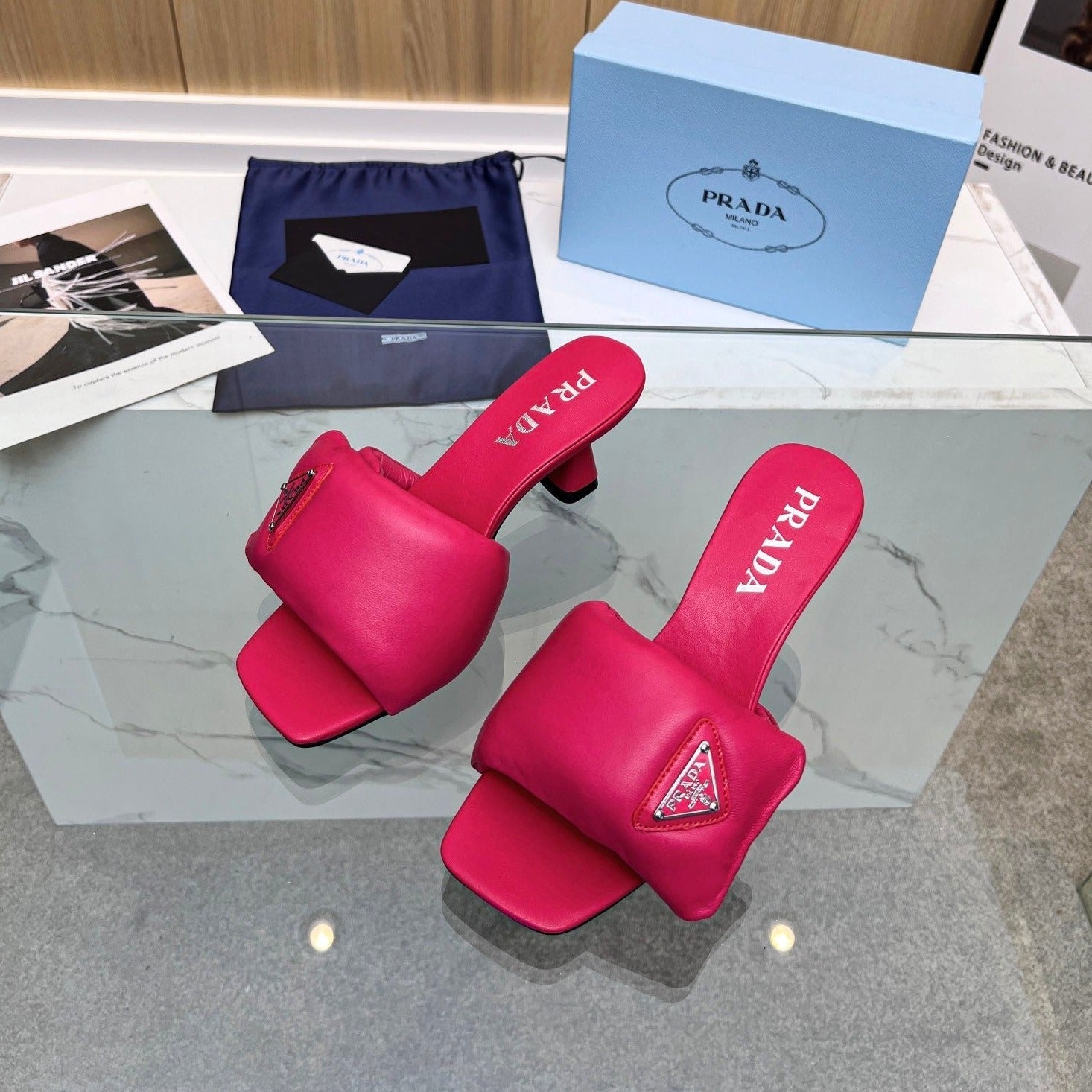 PRA TRIANGLE HEEL SATIN SLIPPERS CRIMSON