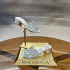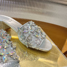 RC 25 Butterfly Flower Rhinestone Satin Sandals Silver Sheepskin 242919