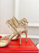 RC 25 Crystal Tassel High-Heeled Sandals Pink Nude Silk Crystal Diamond 251008