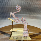 RC 25C Butterfly Flower High Heels Sandals Pink Sheepskin Rhinestone 281974
