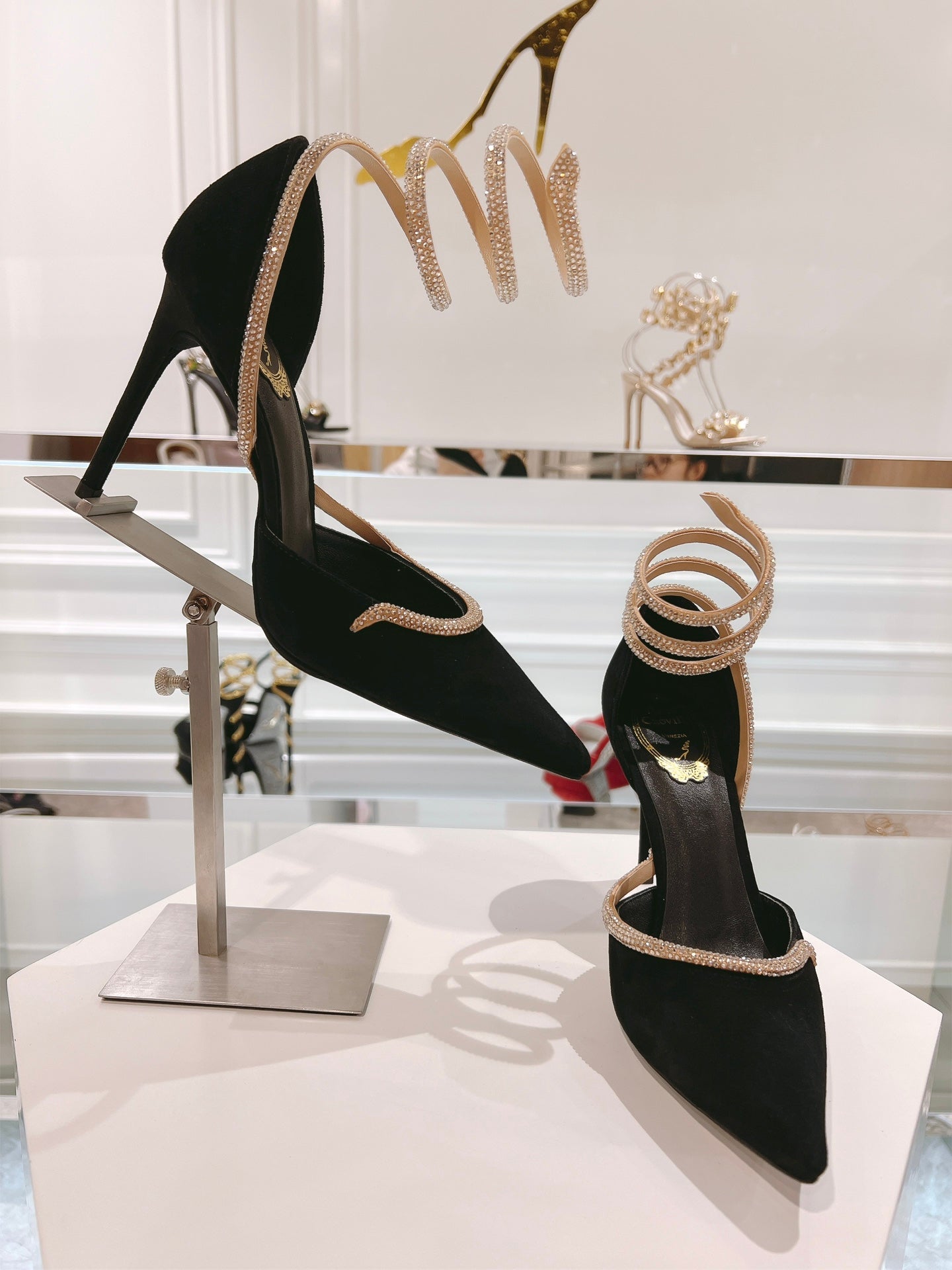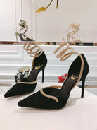 RC 25C Scarpin Black Gold Imported Velvet Swarovski Crystal 339483
