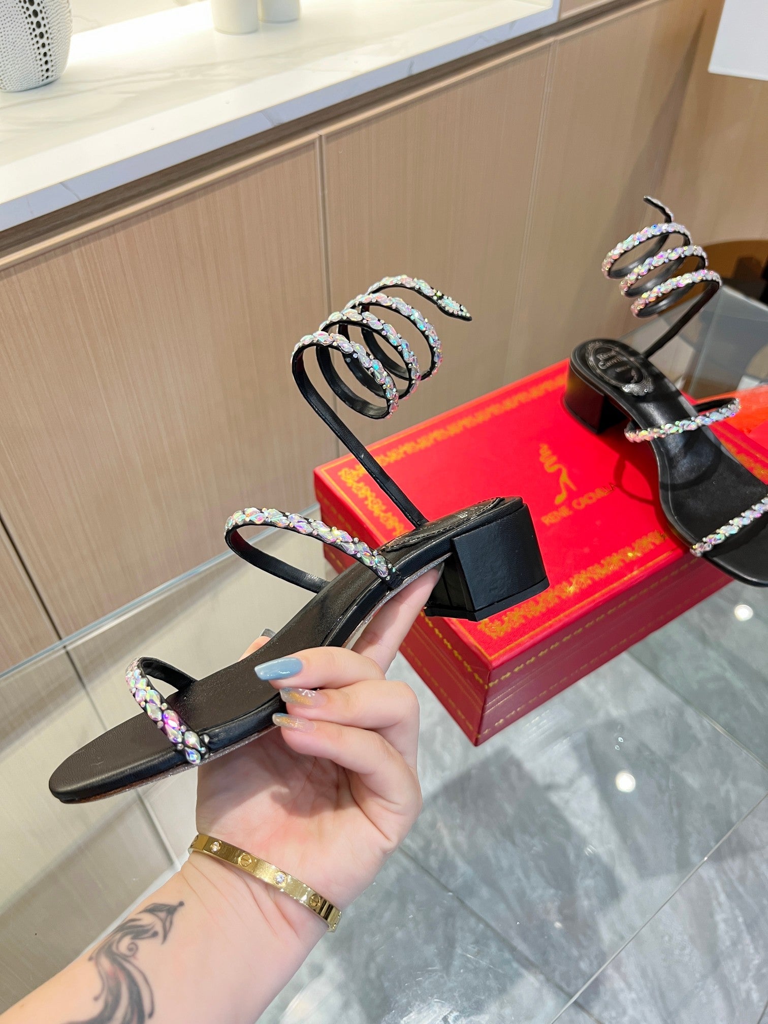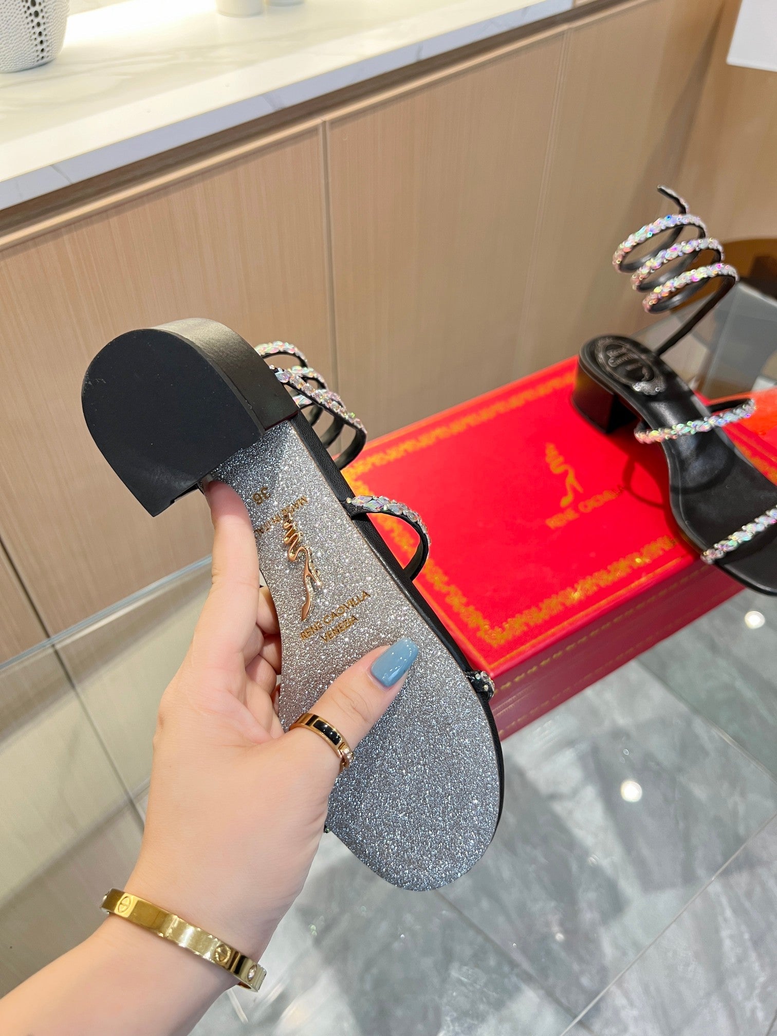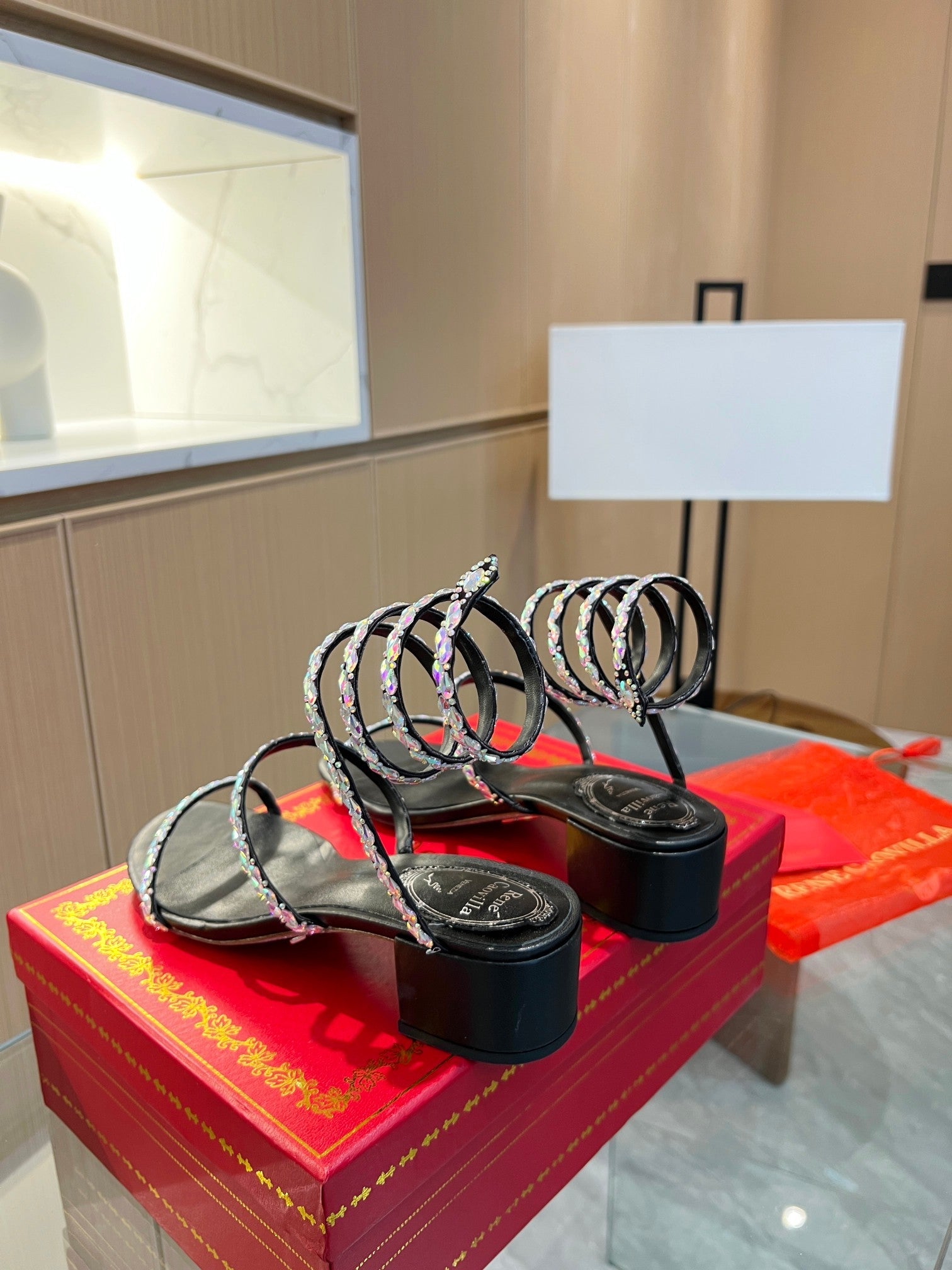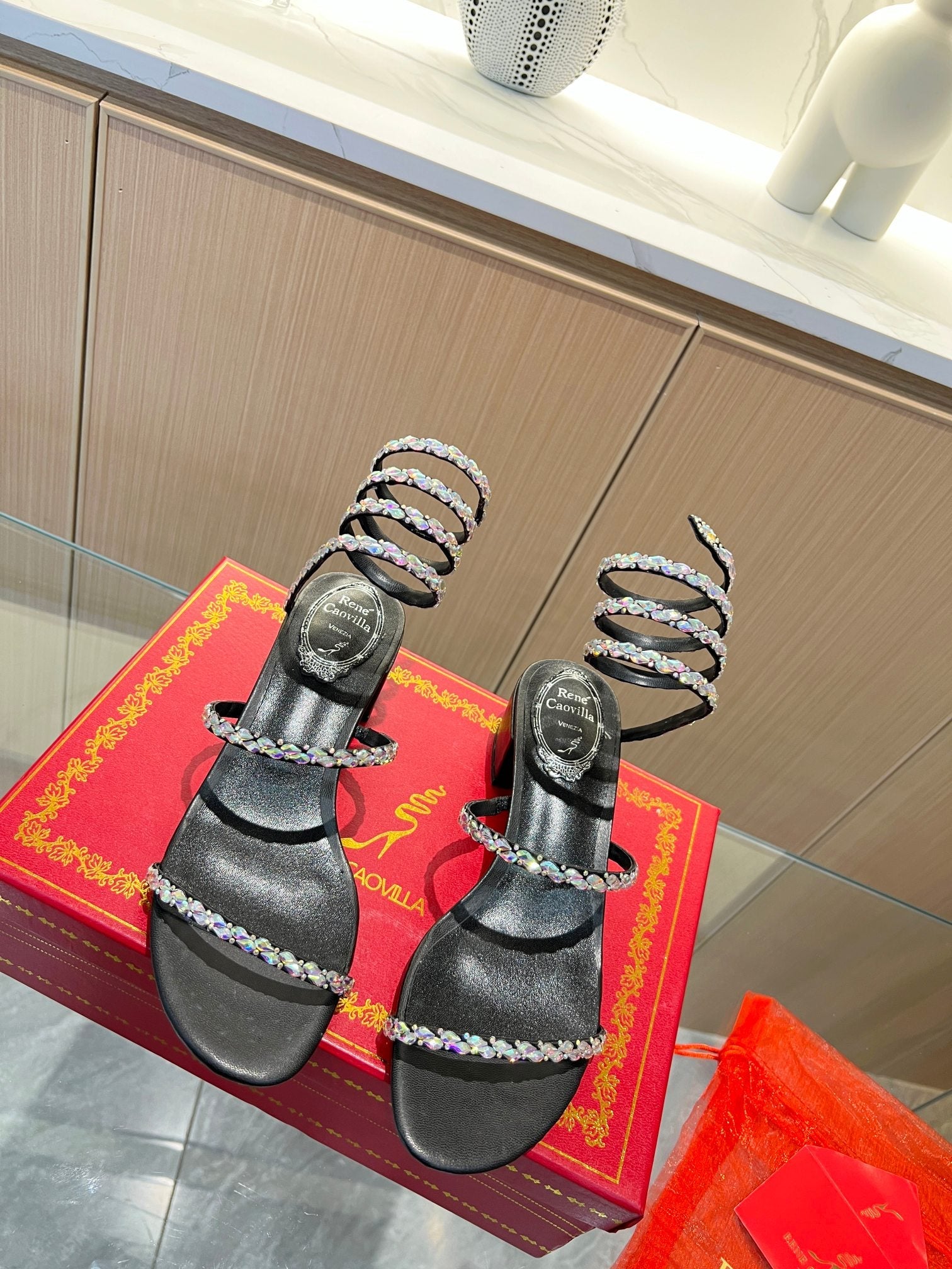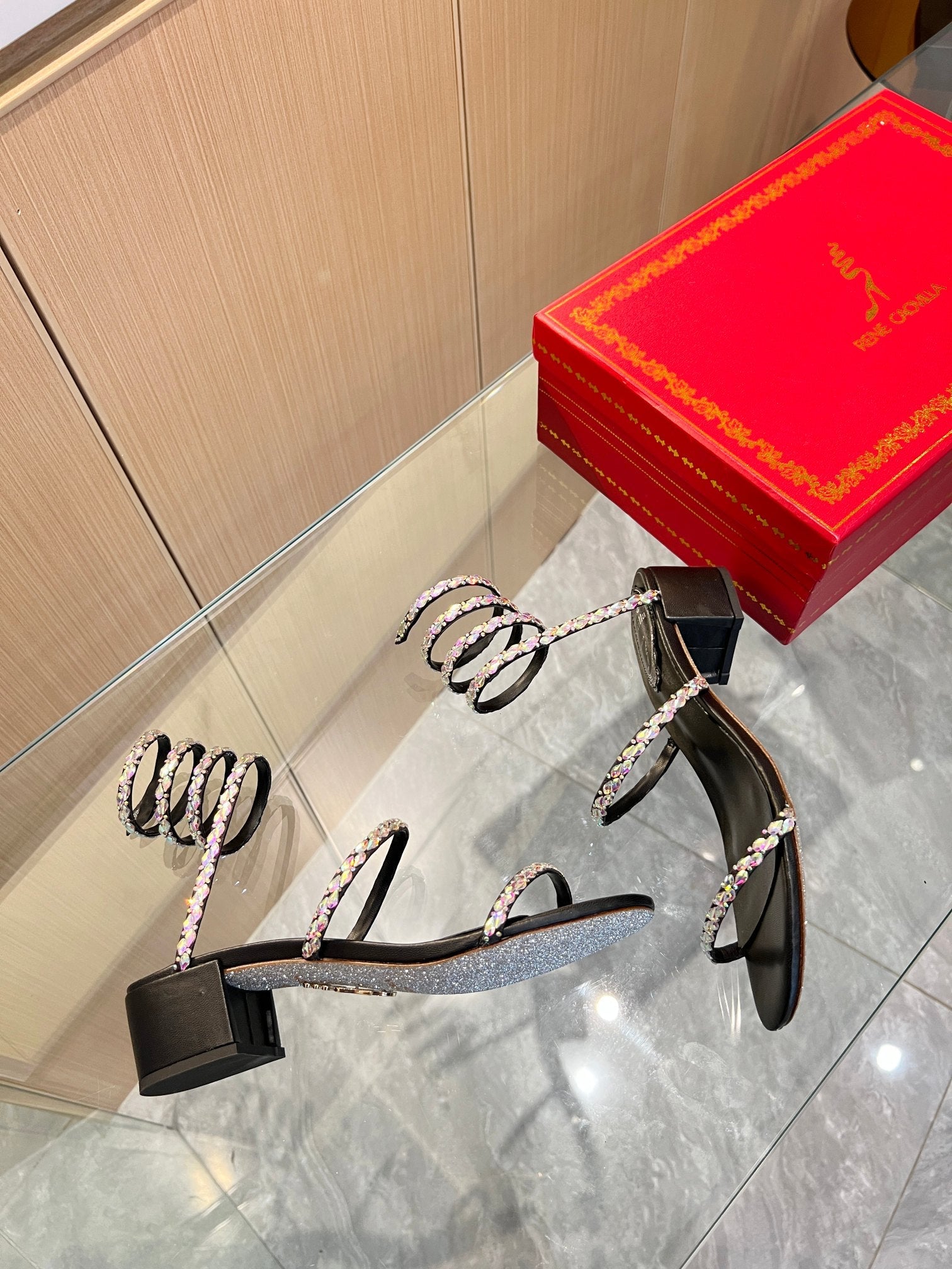 RC Diamond Sandals Black Silk Creole Glass Diamond 341983