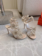 RC Flower Sandals Beige Sheepskin Rhinestones 328467