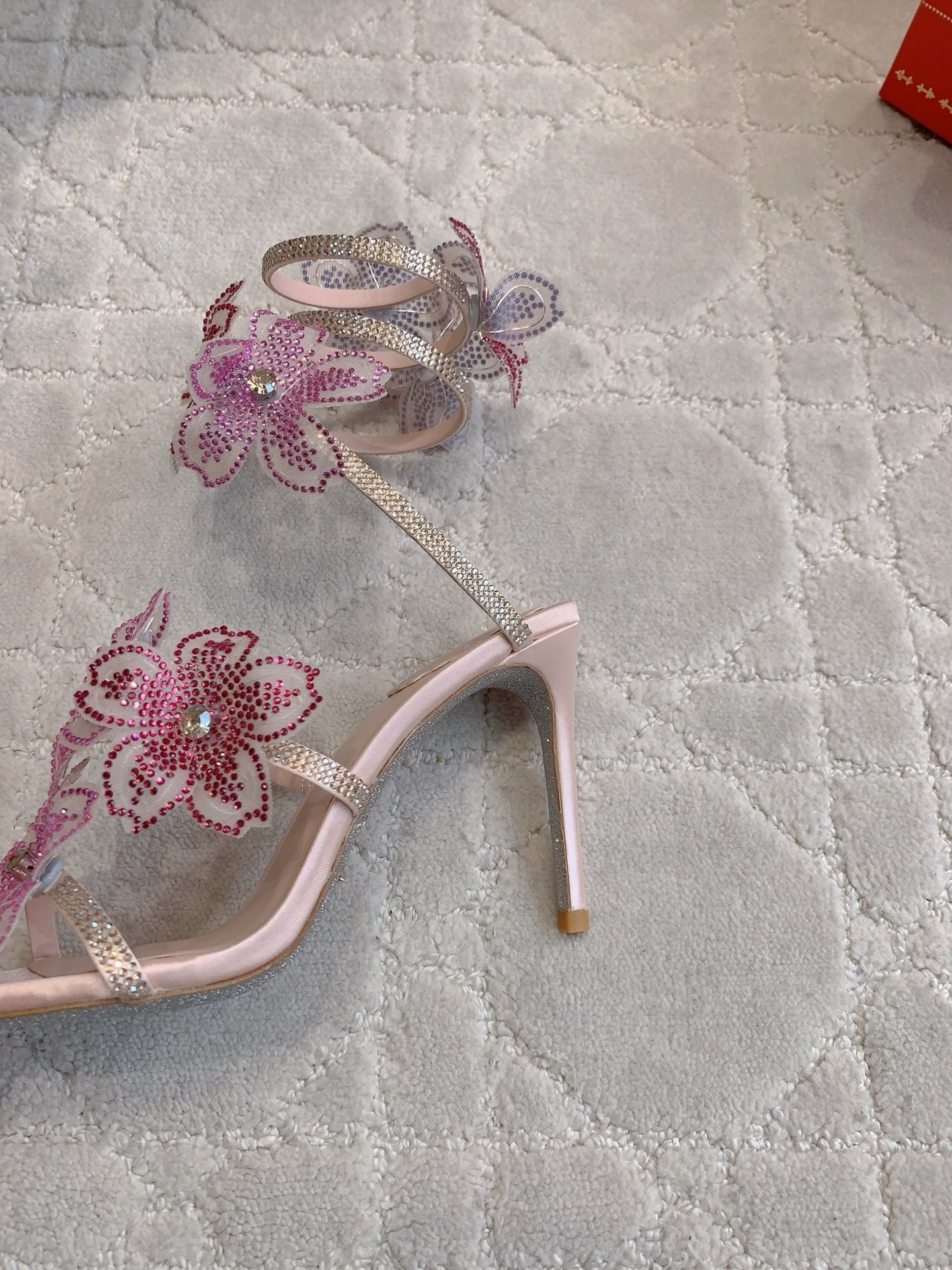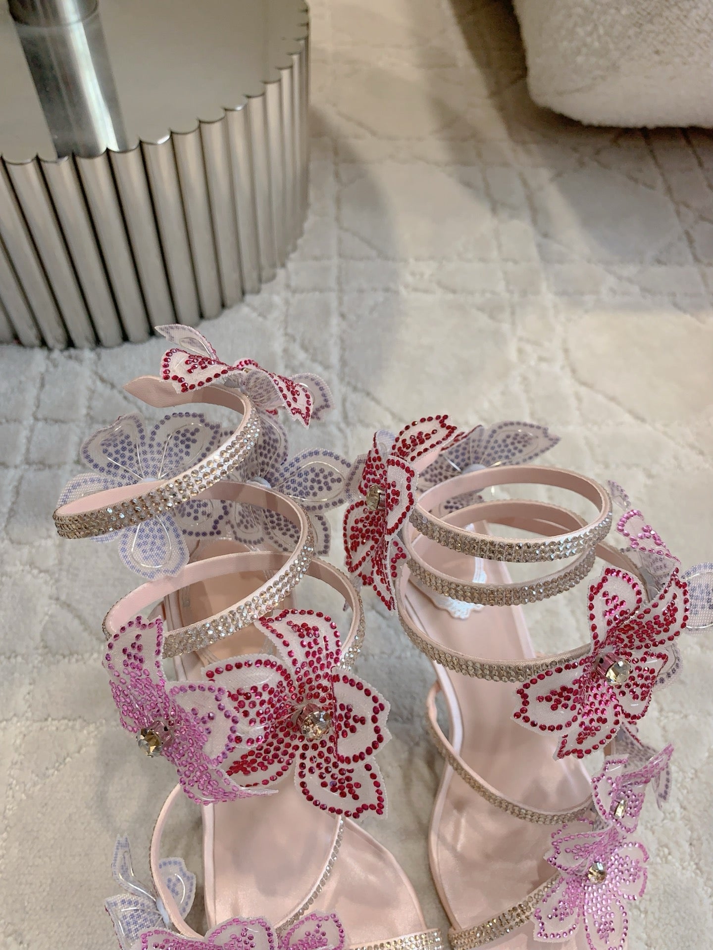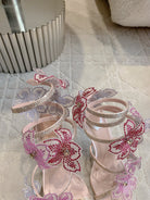 RC Flower Sandals Pink Sheepskin Rhinestones 328465