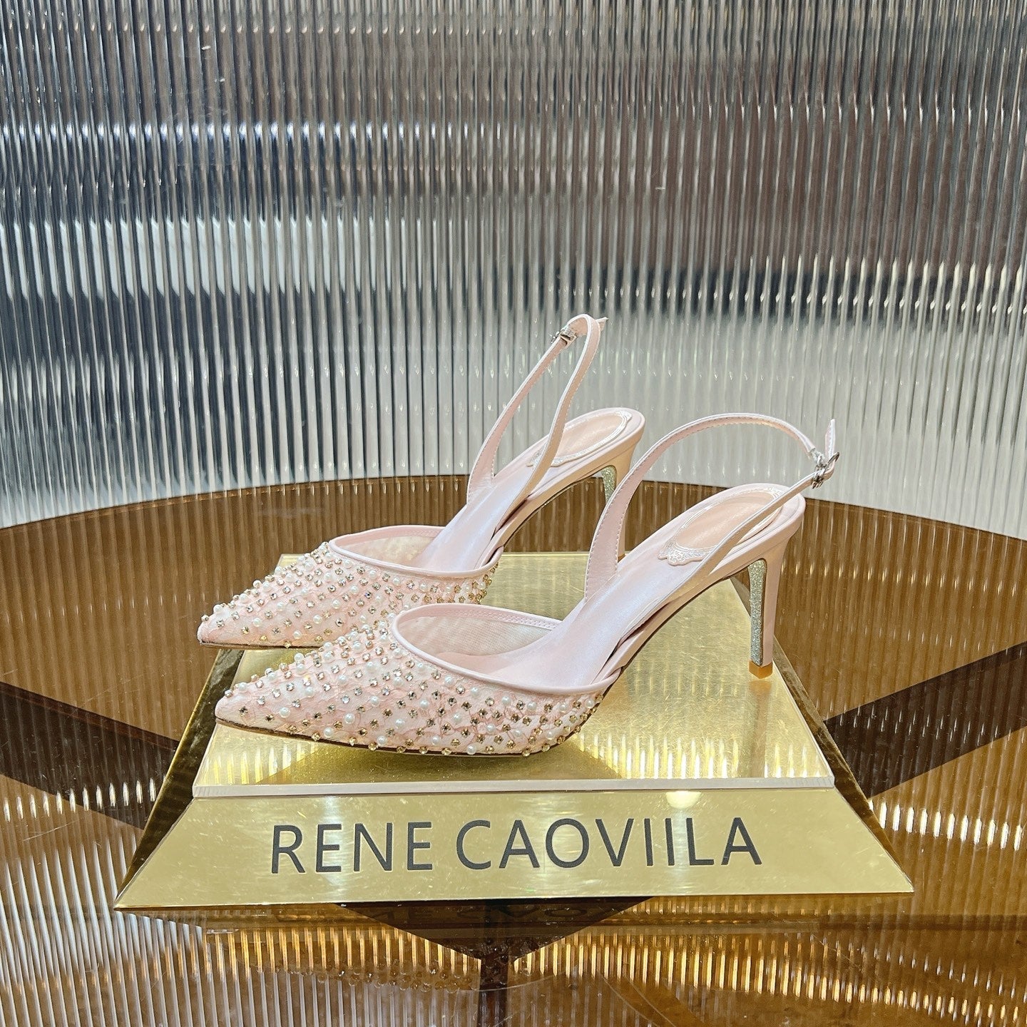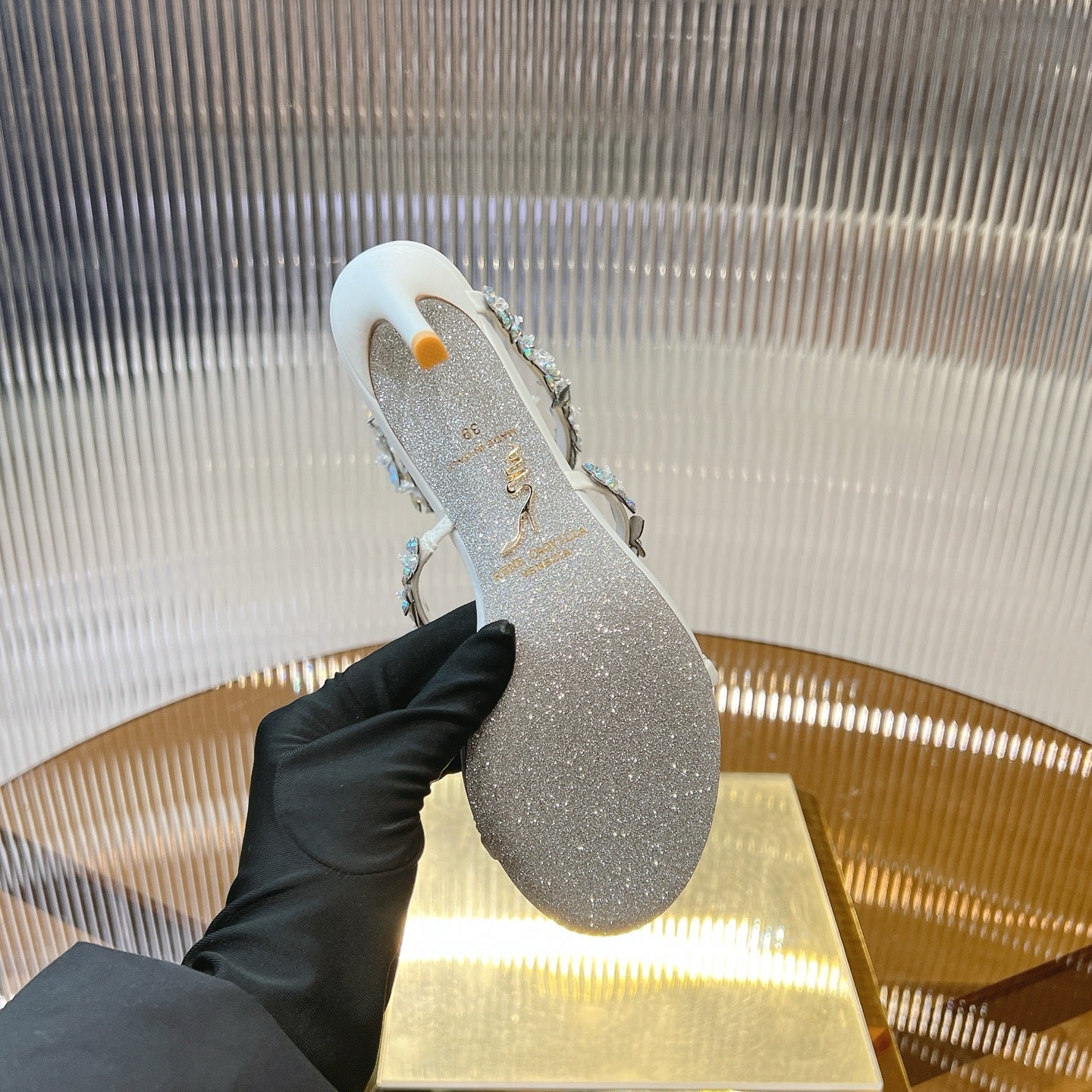 RC 25C Stiletto Sandals White Silk Rhinestone 275775