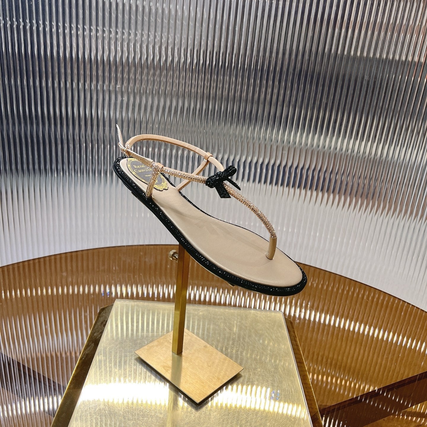 RC 25C Thong Diamond Flat Sandals Black Silk Rhinestone 275773