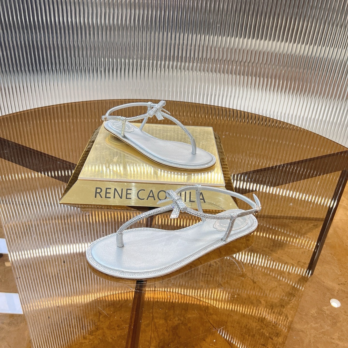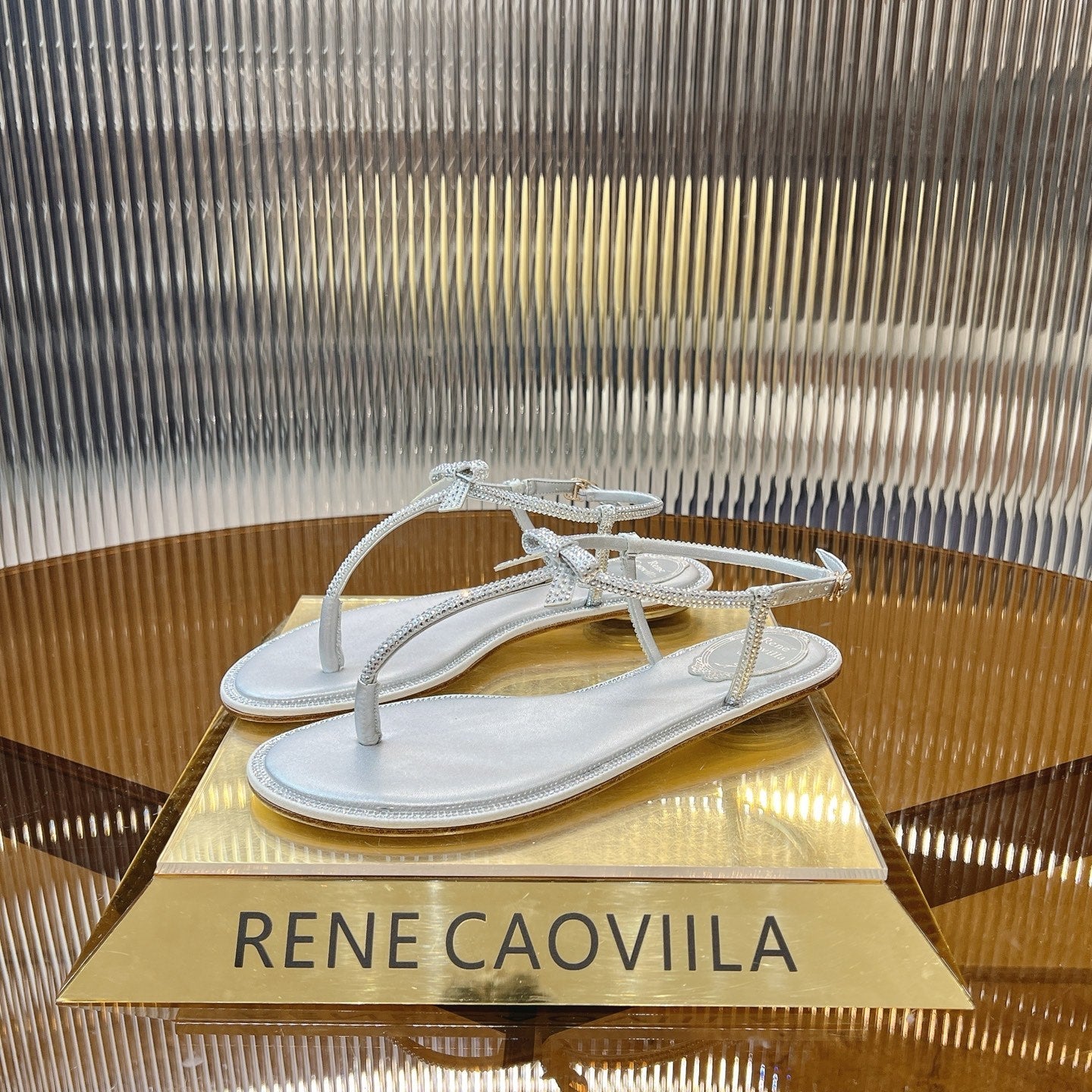 RC 25C Thong Diamond Flat Sandals White Silk Rhinestone 275772