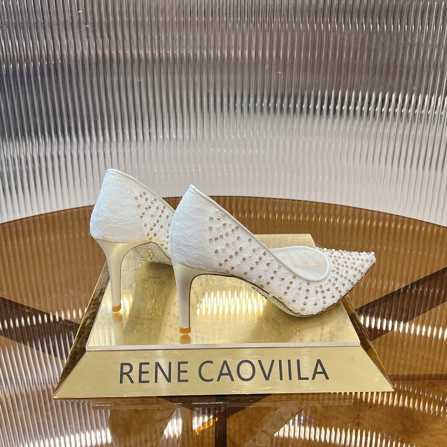 RC 25C Crystal Pearl Gem Lace High Heels White Sheepskin 275753