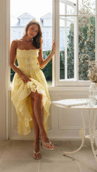 Robe longue à bretelles Spaghetti - Blanc et Jaune 🌸✨