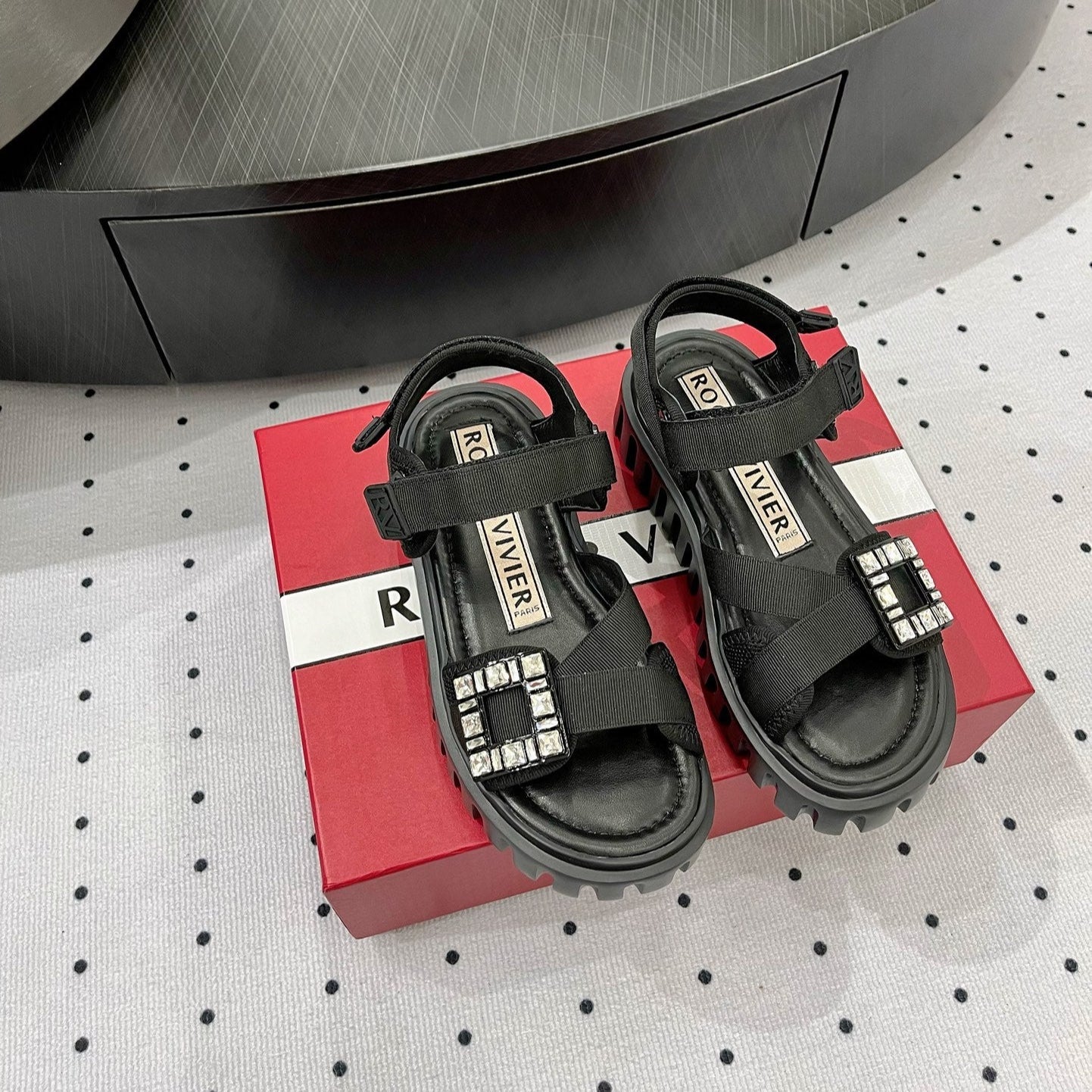 Viv Diamond Sandals Black Fabric 560521
