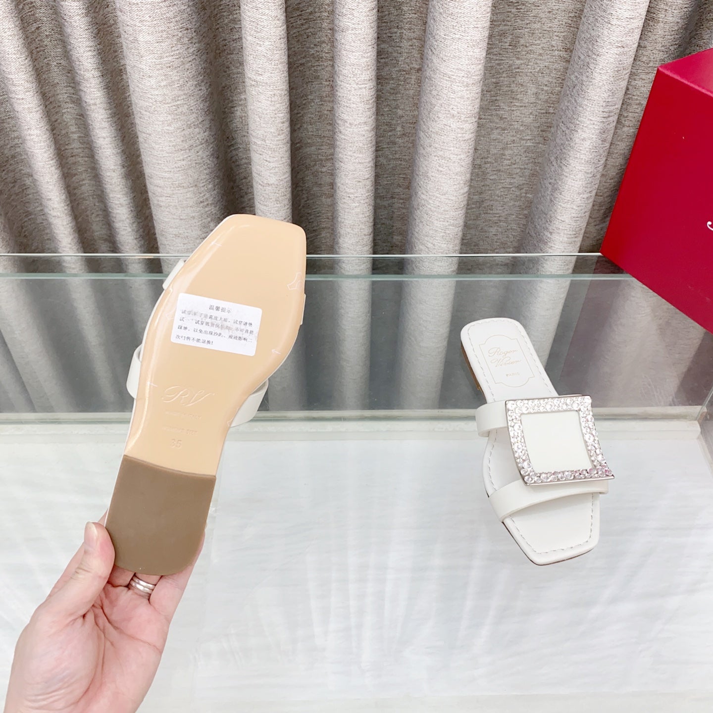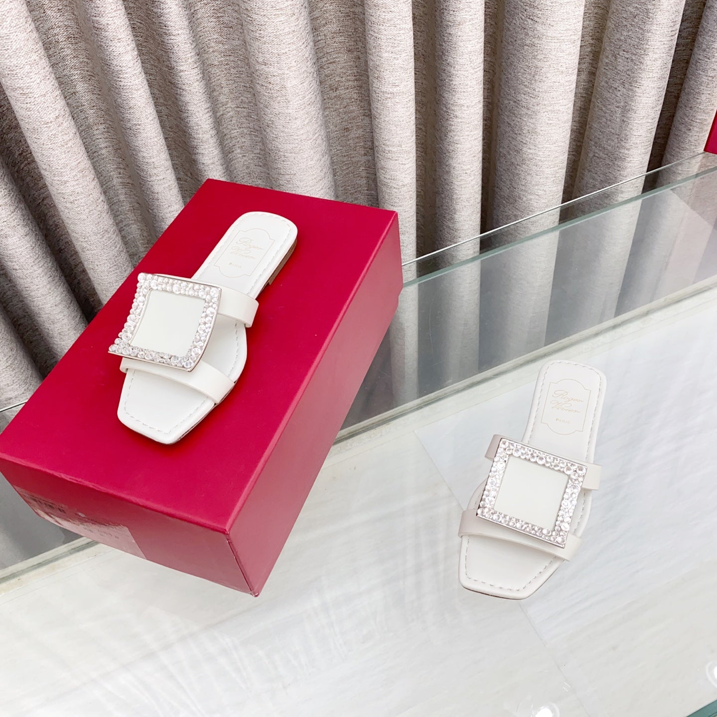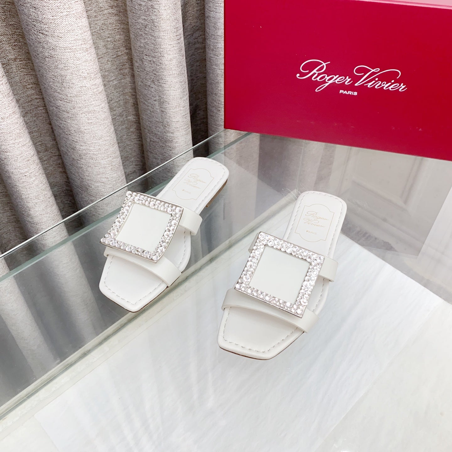 Viv 25 Diamond Flat Slippers White Cowhide 283036
