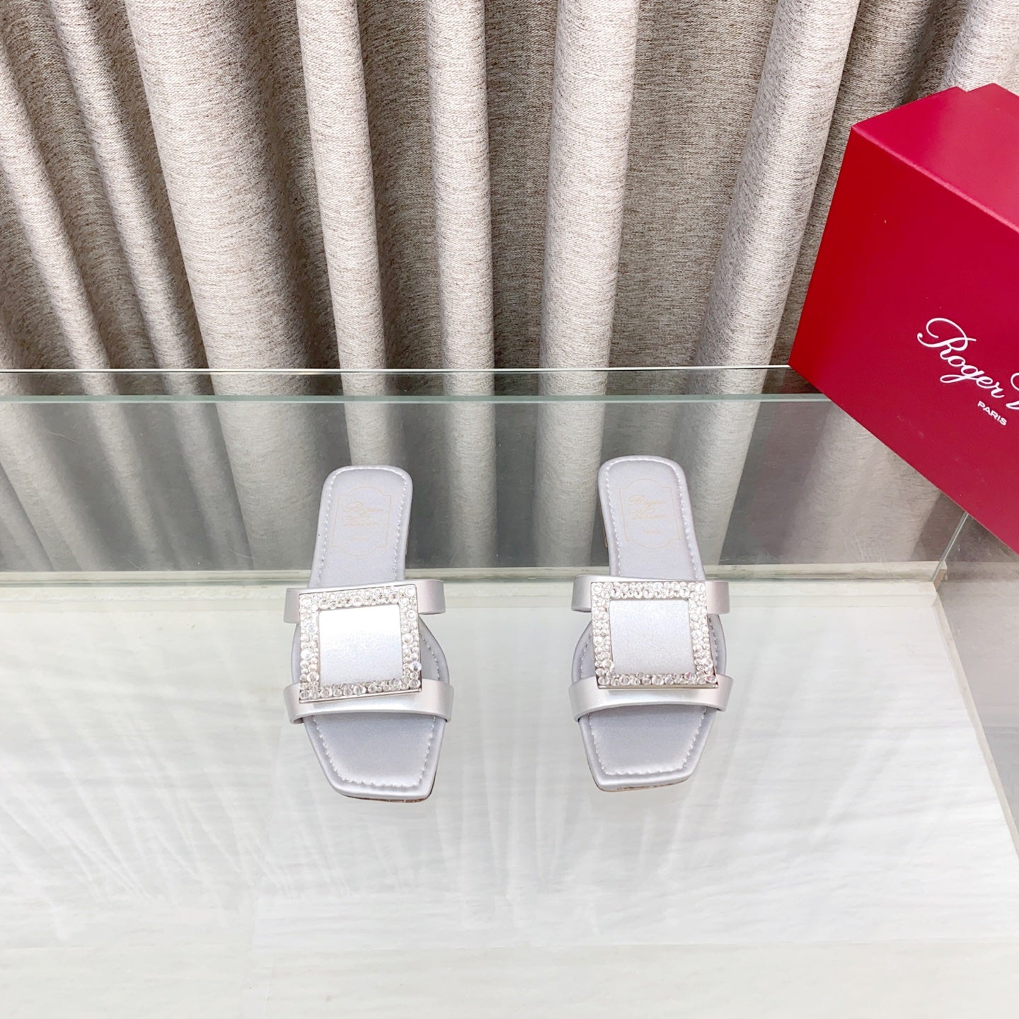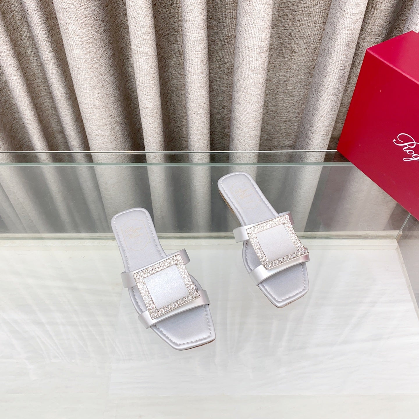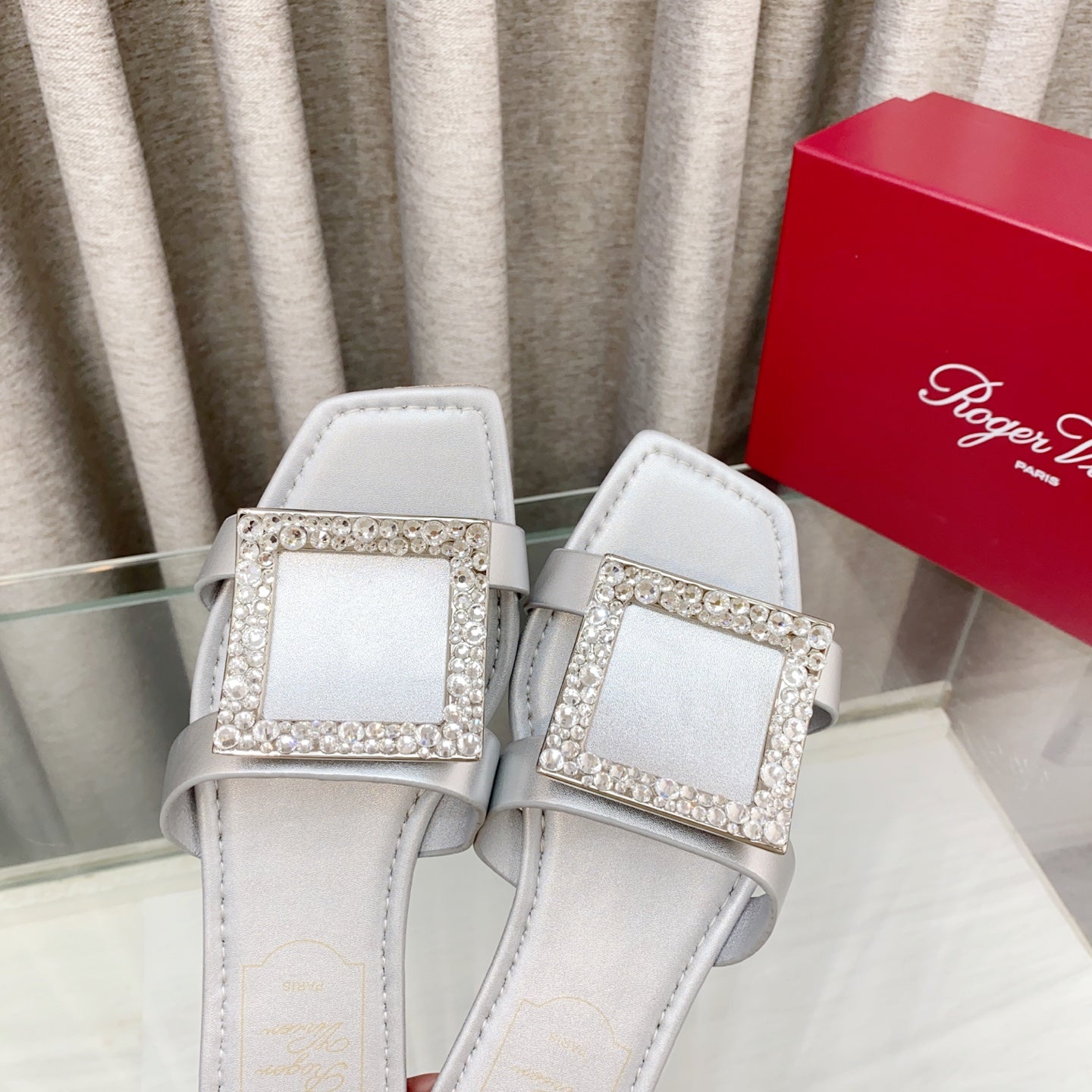 Viv 25 Diamond Flat Slippers Silver Cowhide 283037