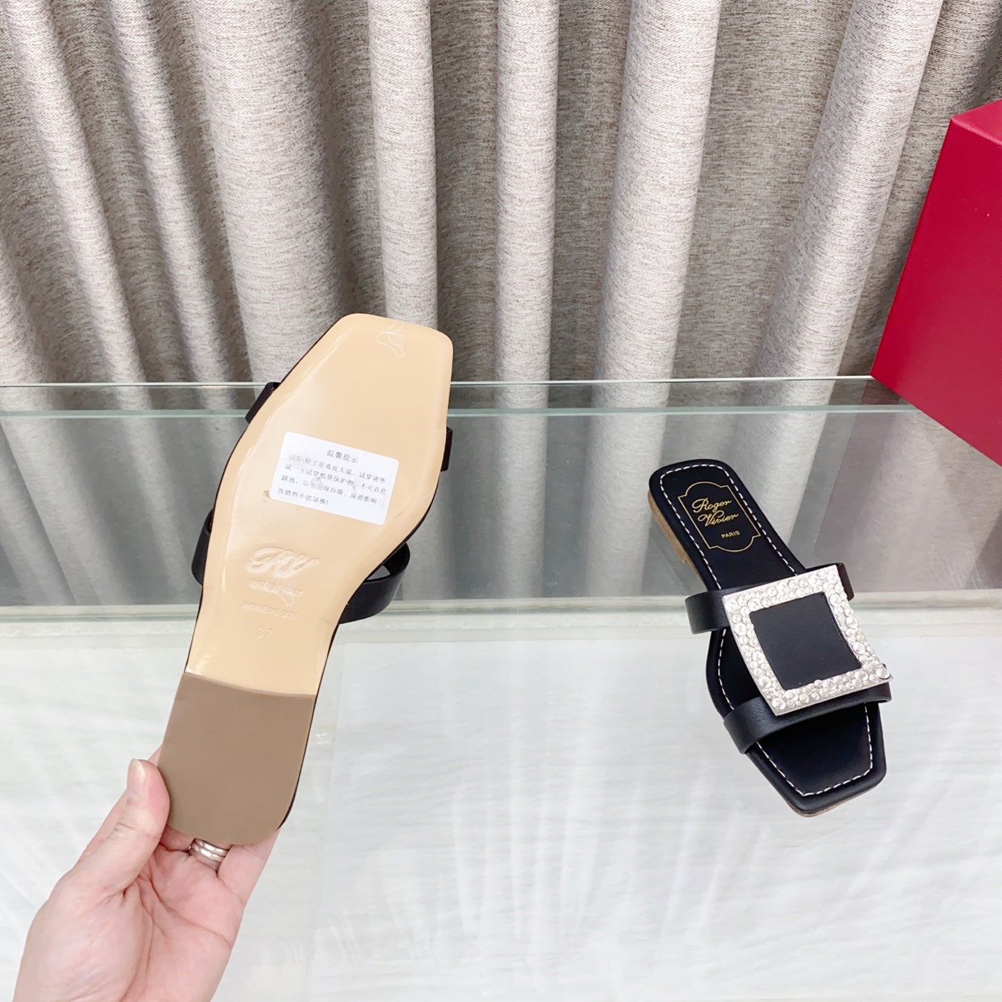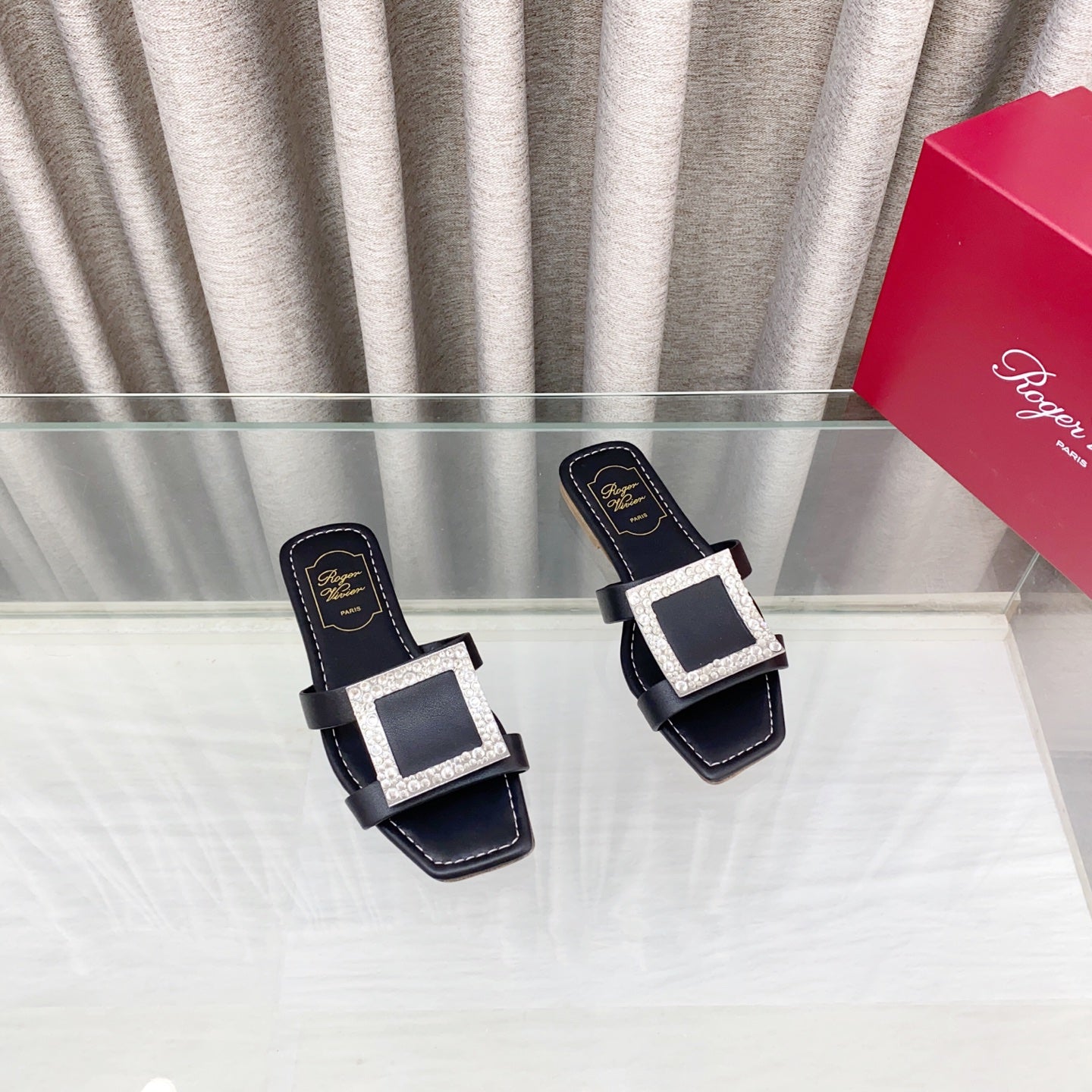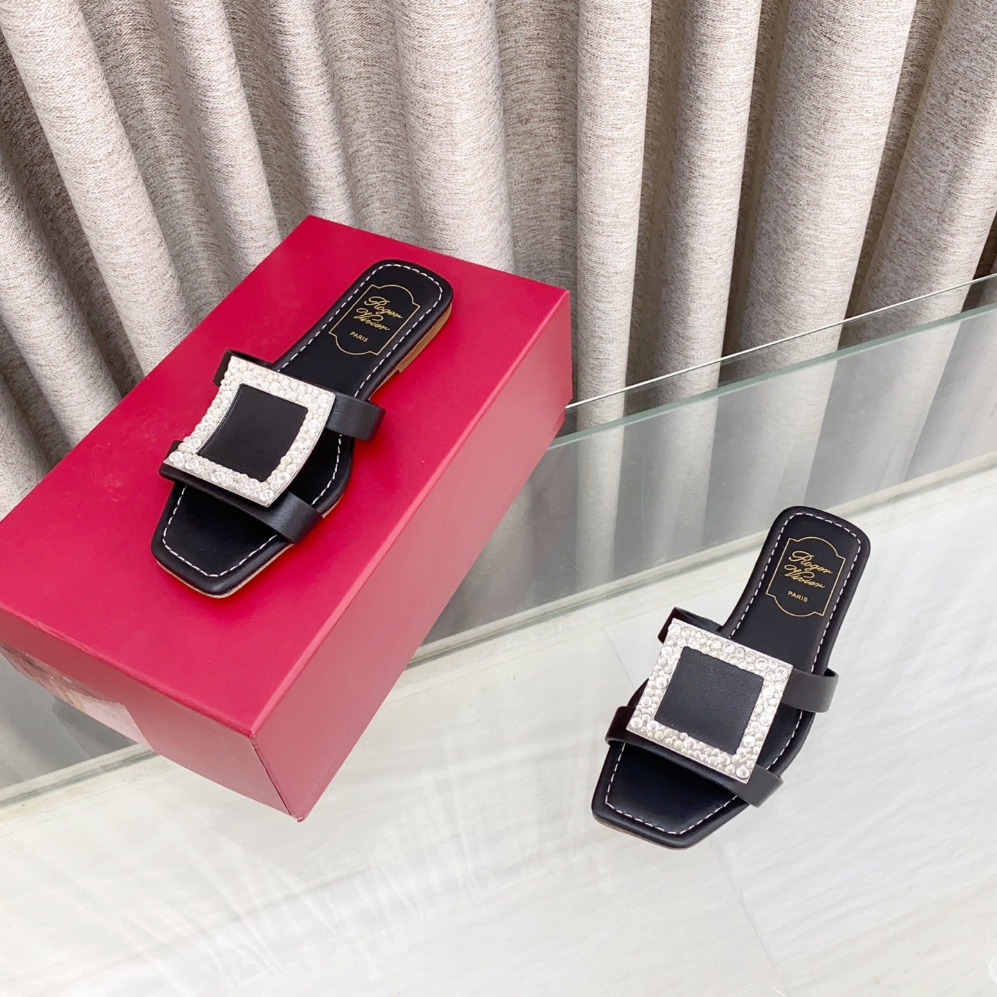 Viv 25 Diamond Flat Slippers Black Cowhide 283038