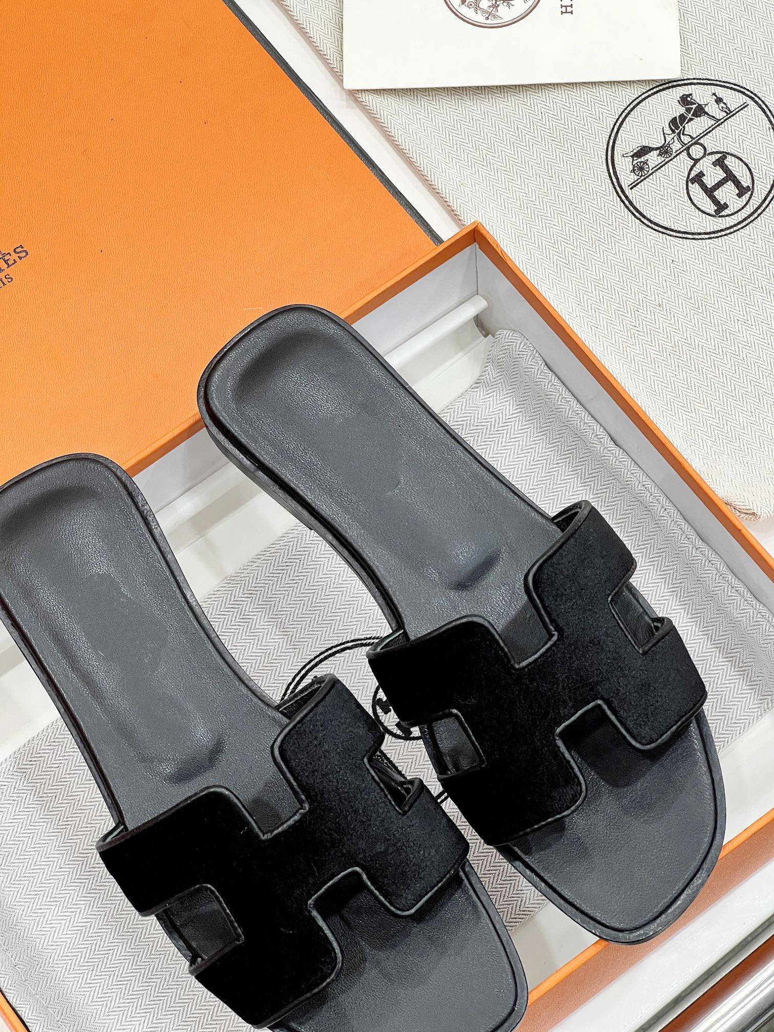 - Material: Sandal in velvet goatskin with iconic "H" cut-out.