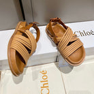 CHLOÉ CROSS STRAP SANDAL IN BRONZE BROWN RUBBER WITH GOLD HARDWARE