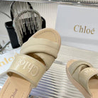 CHLOÉ MILA FLAT SLIDES 5 CM IN BEIGE EICRU CALFSKIN AND RE-NYLON