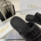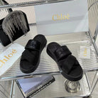 CHLOÉ MILA FLAT SLIDES 5 CM IN BLACK CALFSKIN AND RE-NYLON