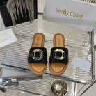 CHLOÉ WOVEN SLIDE MULE IN BLACK WOOL AND BROWN LAMBSKIN GOLD HARDWARE