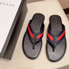 GG Men's Thong Web Black Blue Cowhide 554610