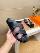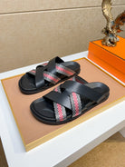 HM Men's Kazimir Sandals Black Red Calfskin 735743