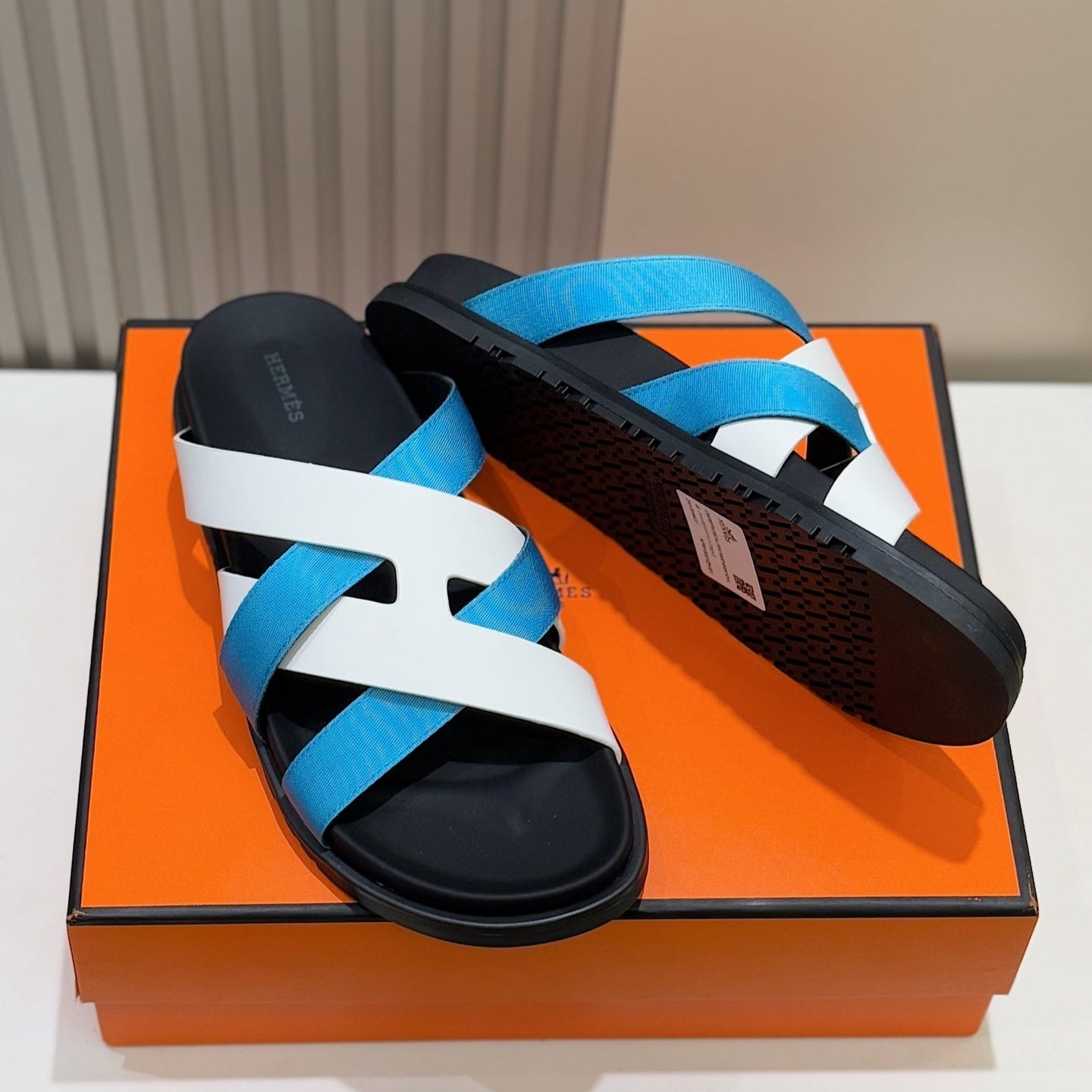 HM Men's Kazimir Slide Blue White Calfskin 562777