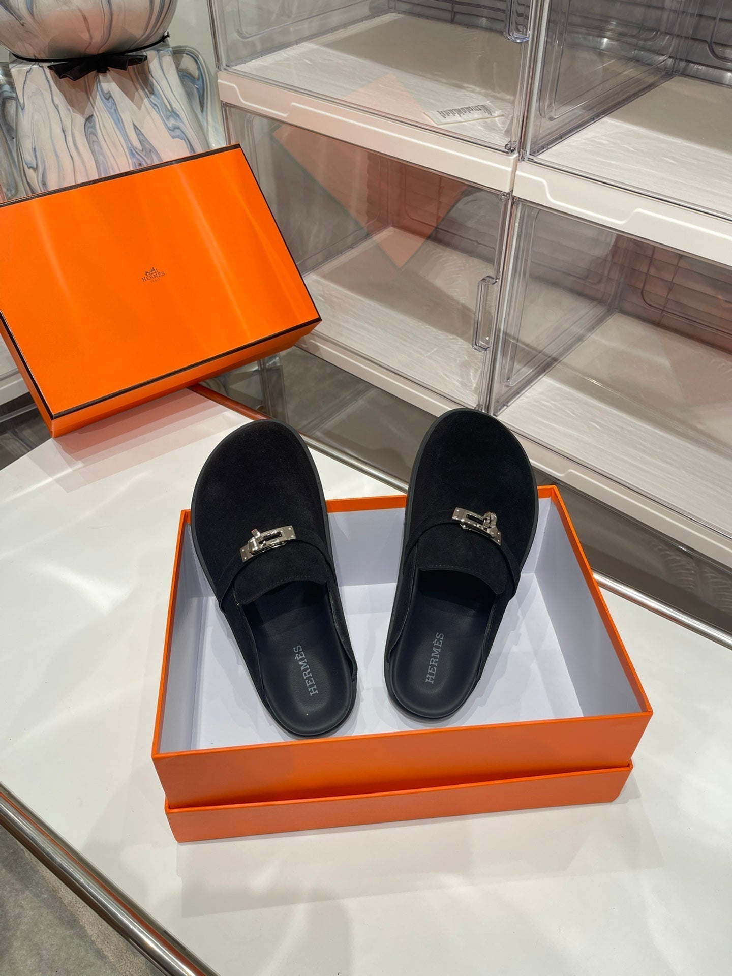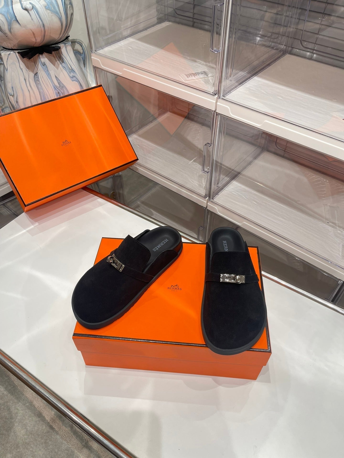 HM Men's Mule Black Suede 573281