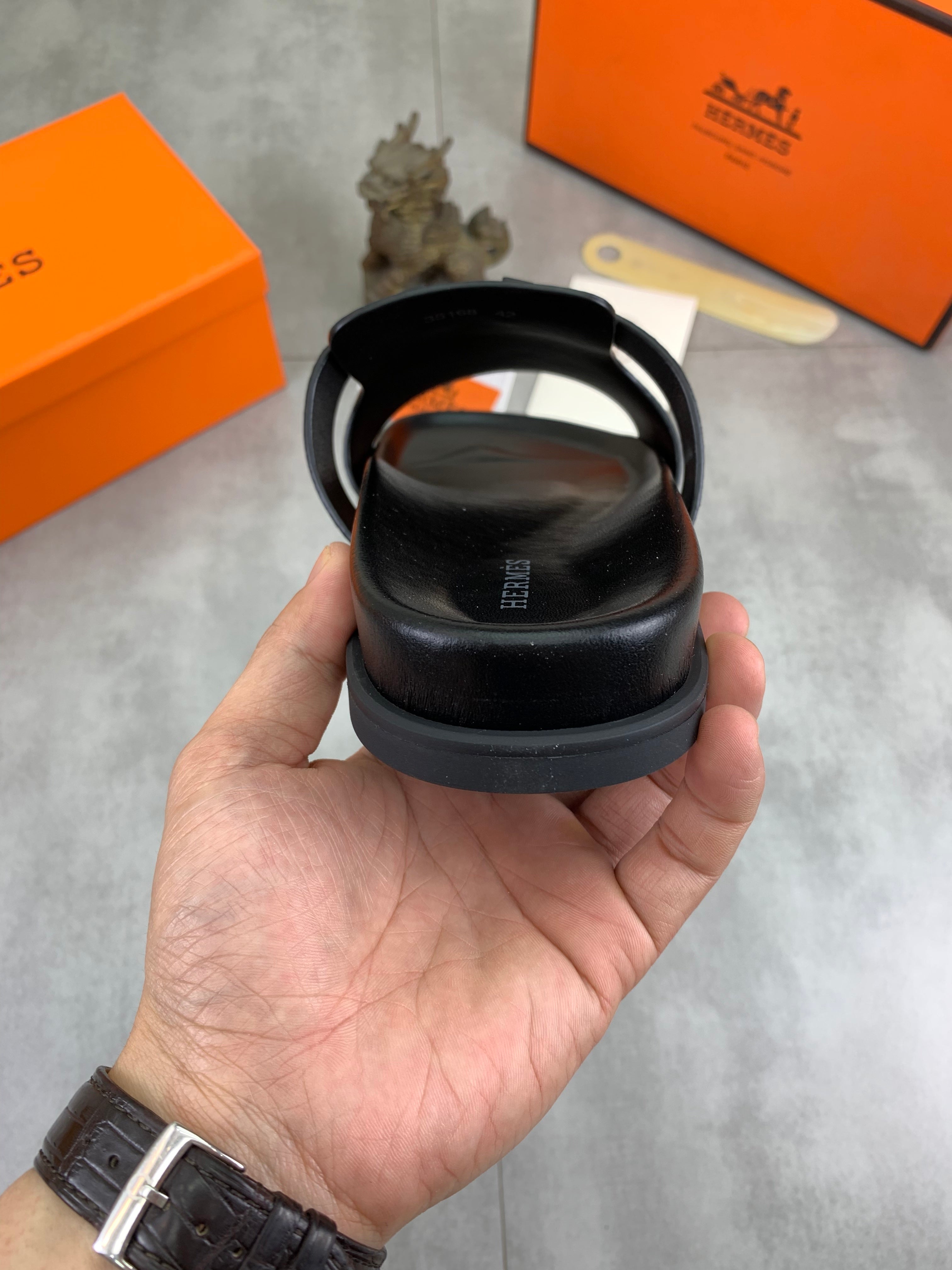 HM Men's Slide Black Cowhide 616260