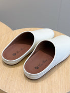 LP TOMORI SABOT MULES WHITE CALFSKIN