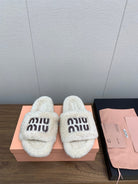 Miu Slippers Retro White With Brown Lettering Pure Wool
