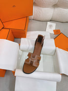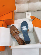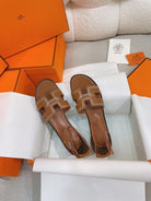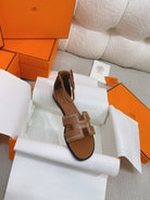 - Material: Sandal in Clafskin with straight cut edges, "H" cut-out detail and thin ankle strap.